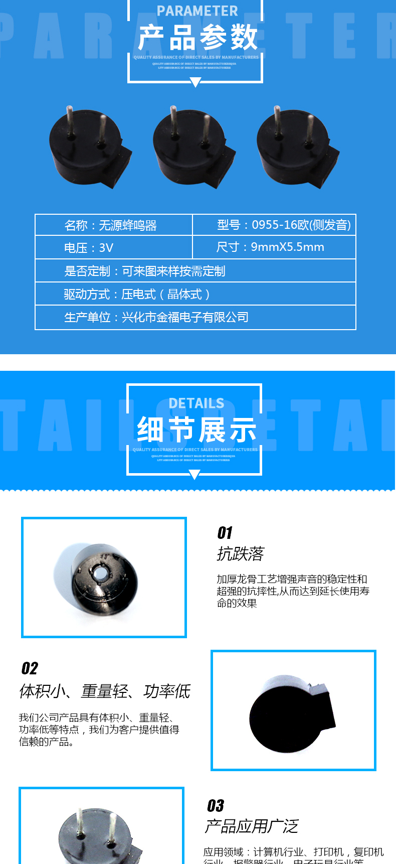 無(wú)源 0955-16歐 3V 側(cè)發(fā)音